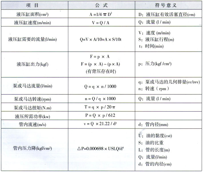 液壓常用計算公式