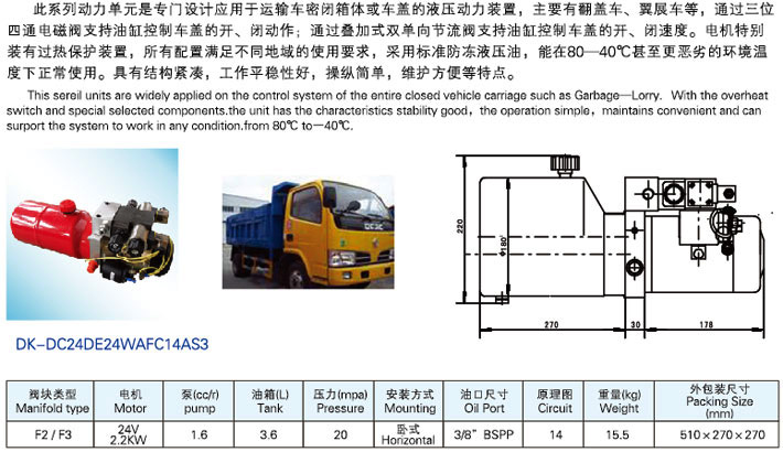 環(huán)保加蓋車(chē)專用液壓動(dòng)力單元