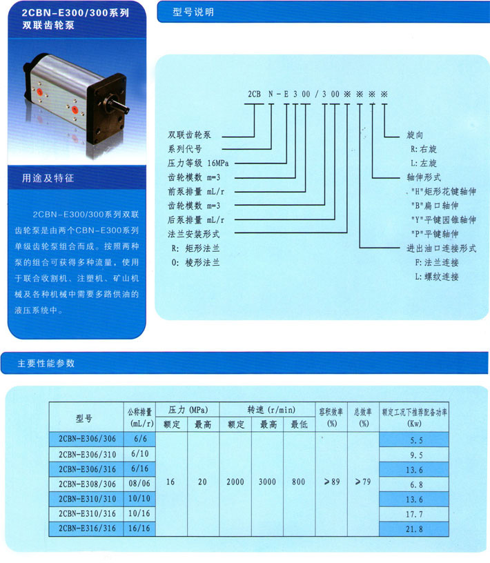 2CBN-E300/300系列雙聯(lián)齒輪泵